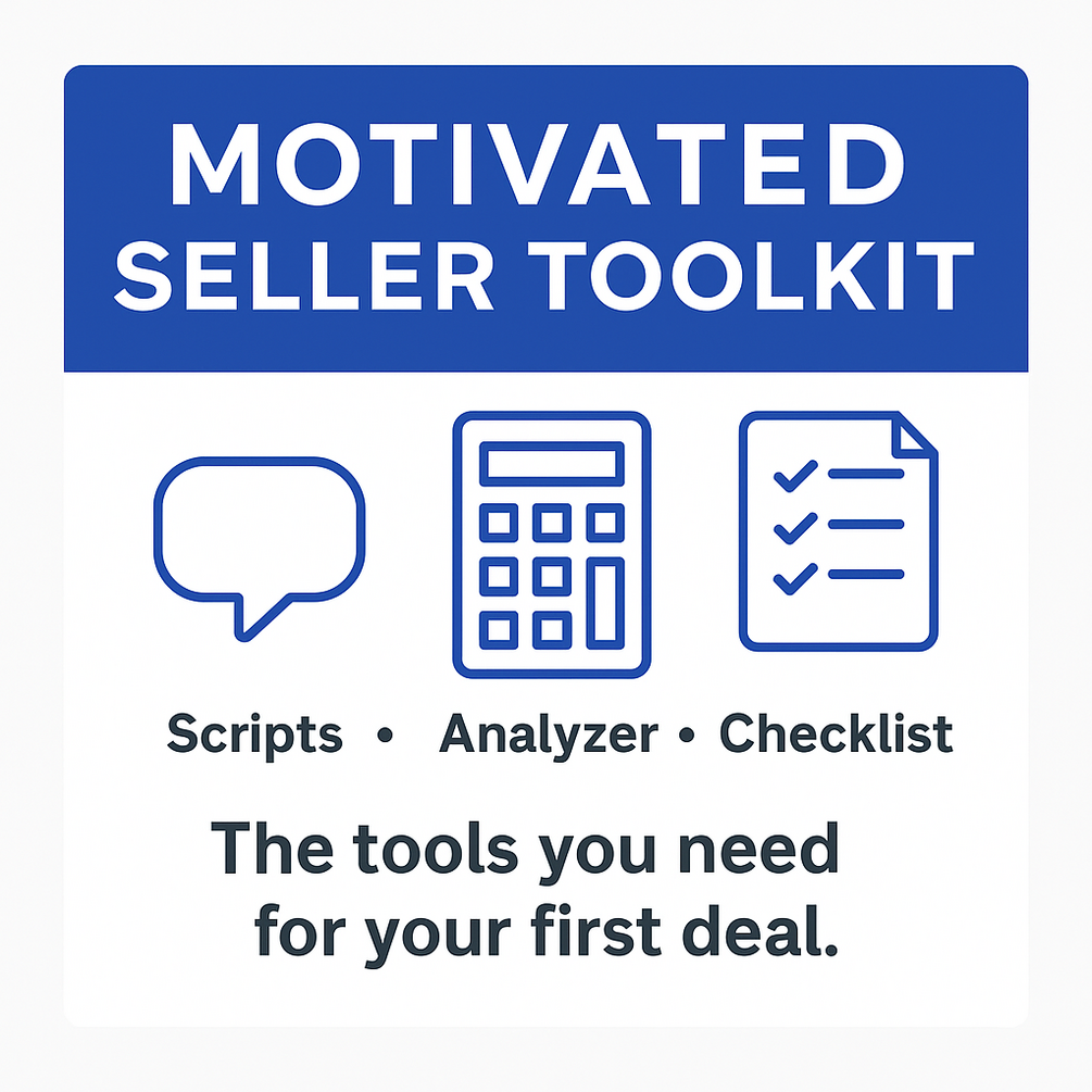 The must-have starter bundle of scripts, checklists, and tools to help you land your first wholesale deal — without guesswork.